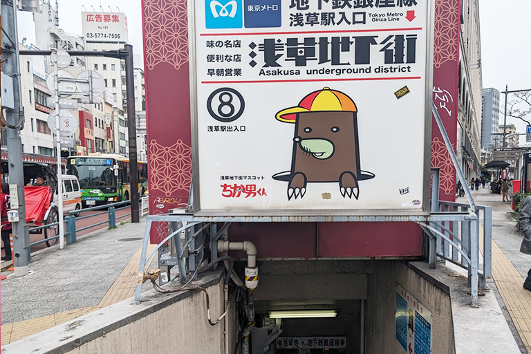 浅草にあるのにあまり知られてない「浅草地下街」。「ちか男くん」という気の抜けたマスコットもいます。