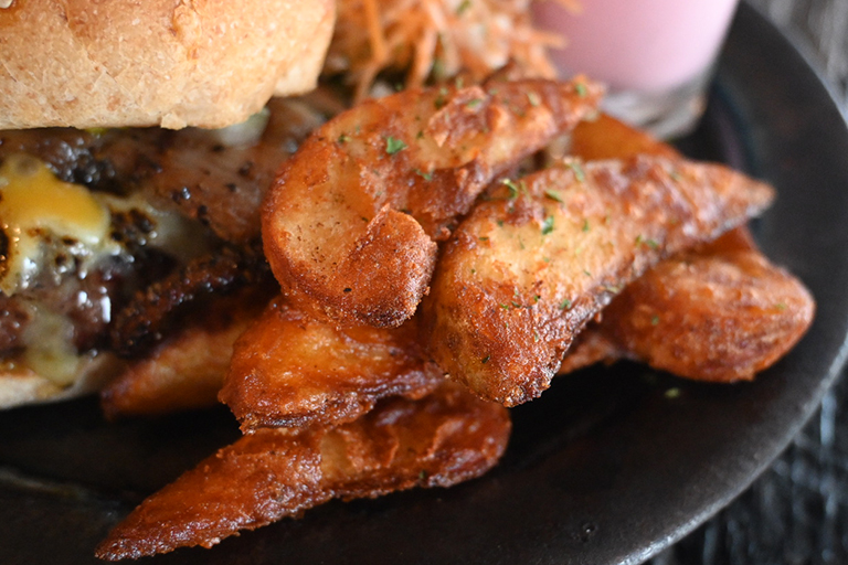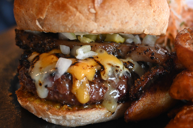 艶やかな肉。クラシックバーガーにバーボン香る自家製ベーコンとチーズをトッピングし、胃袋に巣くう砂漠を走る長距離ドライバーを召喚した。ヘイ! とお肉ちゃんにご挨拶して、ぐわむっと頬張る。
