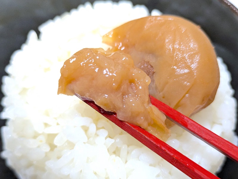 さらに信じられないのが、カレーの具材(ホタテ)が驚くほど具沢山でルーをスプーンであげただけでも夢のような光景を見ることができます。デカ盛りで具沢山ってどういうこと!?