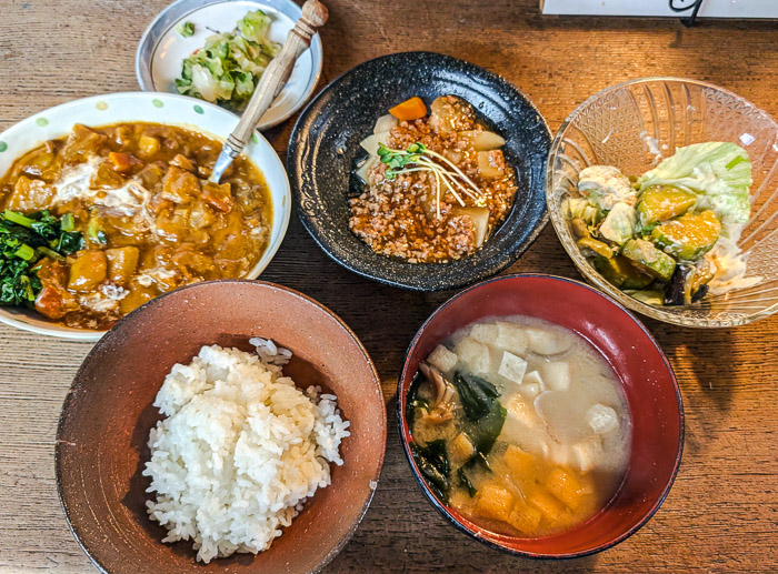 今日の日替わりはカレーのようでした。鎌倉野菜をふんだんに使ったボリューム満点のランチが980円! これだけの内容でこの価格は、かなりお得はないでしょうか。まるで夏休みに親戚の家で出される昼ごはんのような、どこか懐かしさのある味わいです。