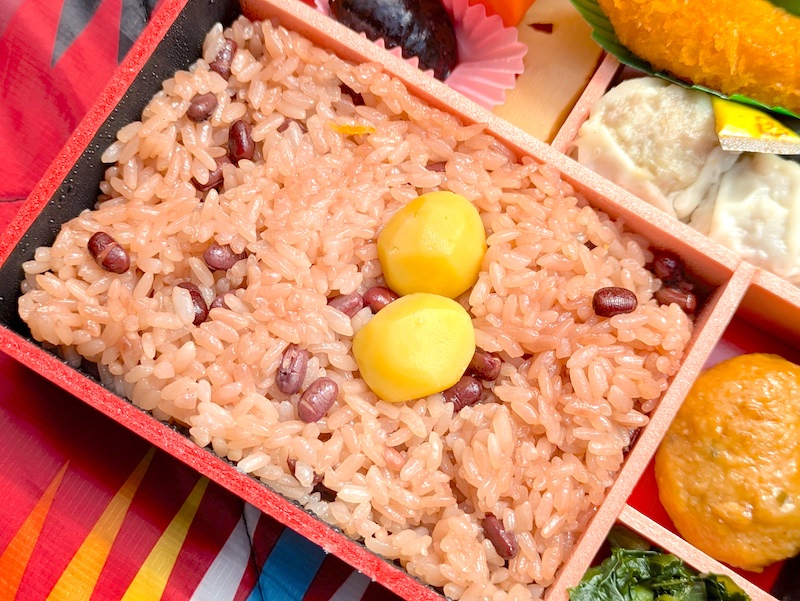 崎陽軒のお弁当は、冷めてもごはんのおいしさがしっかり生きているのが魅力でお赤飯との相性も抜群!もちもちとしたお米に小豆の香りが重なり、最後に栗の甘みまで楽しめて、特別なひとときを味わえます。