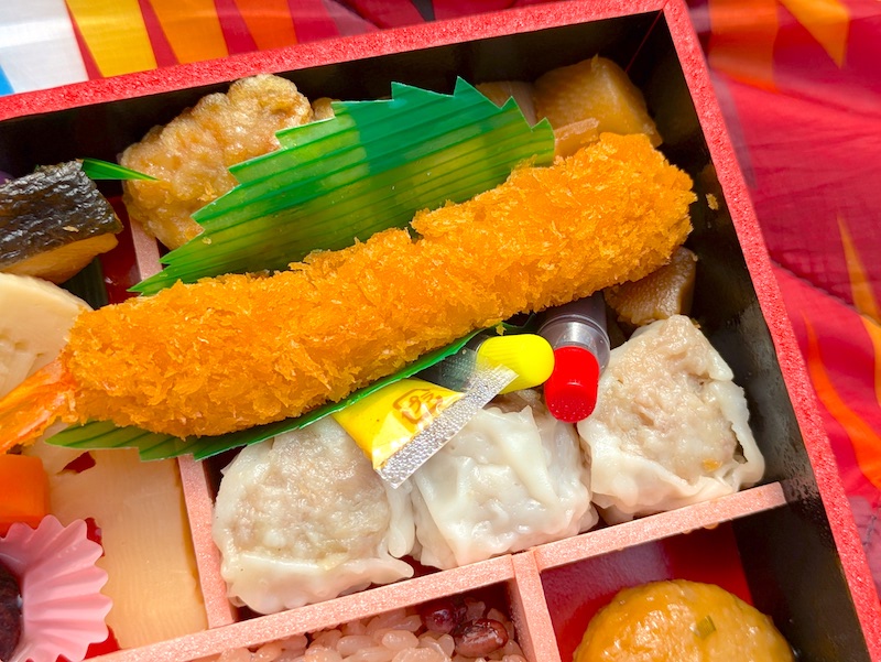 おかずの種類も豊富で、シュウマイはもちろん、エビフライや唐揚げ、そして崎陽軒といえば外せない、あのたけのこ煮までしっかり楽しめます。これだけおかずが揃っているので、お酒のおつまみとしても十分に満足できる内容ですね。