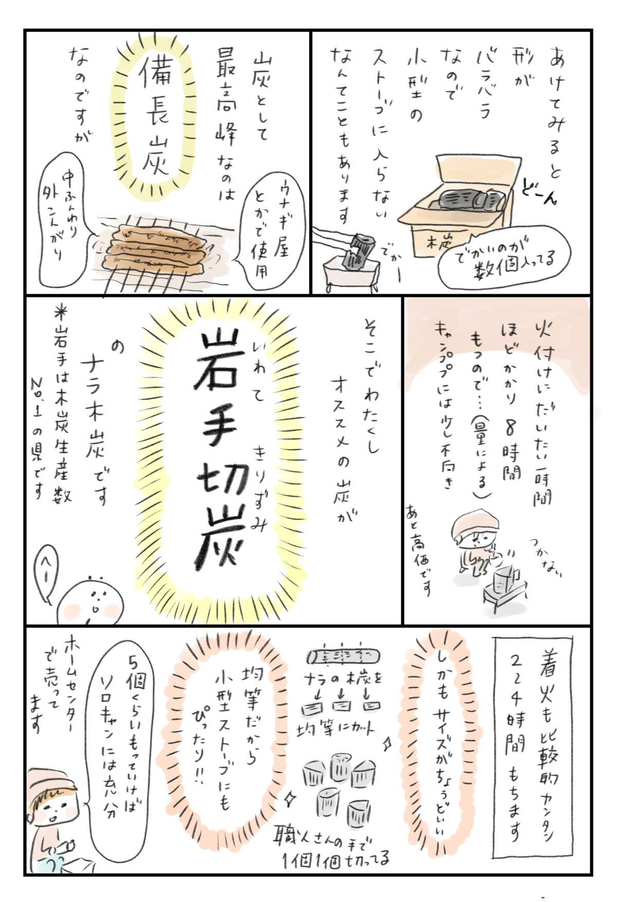 キャンプのBBQや料理に欠かせない「木炭」。着火しやすく、火も長持ちするオススメの炭「岩手切炭」を、キャンプコーディネイター&イラストレーターのこいしゆうかさんが紹介します。上手な炭火のつけ方や、冬キャンプにオススメな「熱燗」の豆知識も!