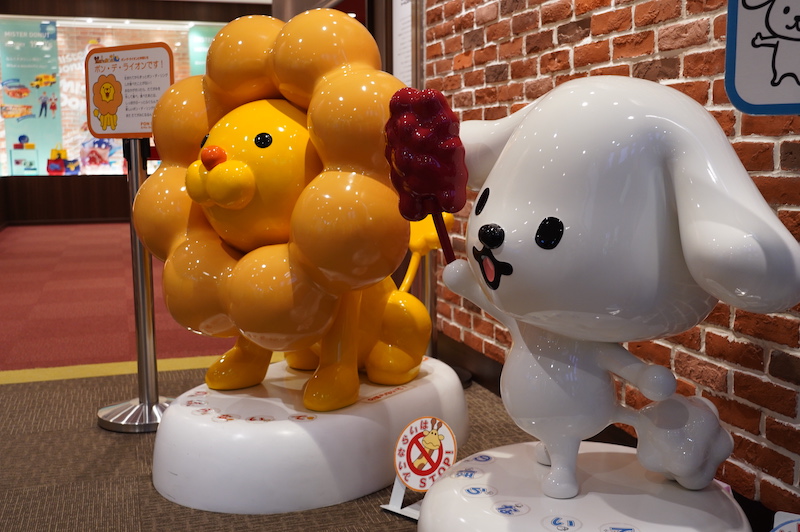 中に入るとミスタードーナツの花形「ポン・デ・ライオン」とダスキンの「ダス犬」がお出迎えしてくれました。見知ったキャラクターが立体になっているとこんなにうれしいんだ……。