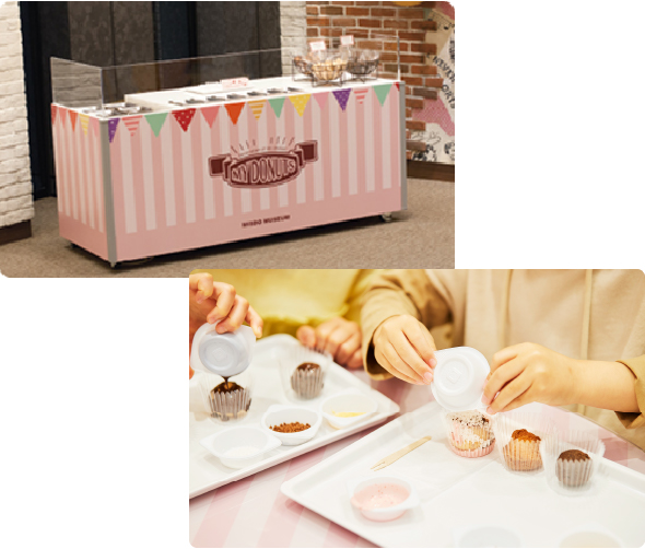 ※「ミスドキッチン」は有料で事前申込の抽選制、「ドーナツボールトッピング体験」は有料