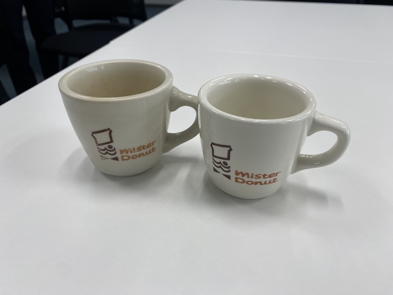左が1981年の「アメリカンカップ」、右が2005年の「ミスタードーナツ35周年記念復刻版コーヒーカップ」