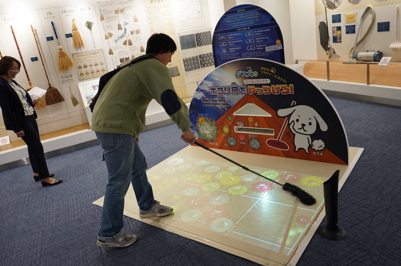 また、ダスキンミュージアムは2フロアにわかれていて、1階にミスドミュージアム、2階には「おそうじ館」があります。おそうじの歴史や効果的なおそうじ方法を楽しく学べるほか、モップでホコリをやっつけるゲームなど体験型展示も!