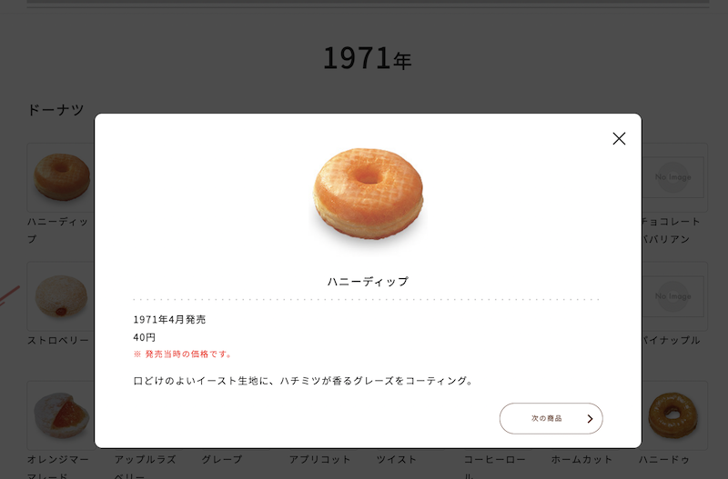 発売当時のハニーディップはなんと1個40円(1971年 メニューヒストリーから引用)