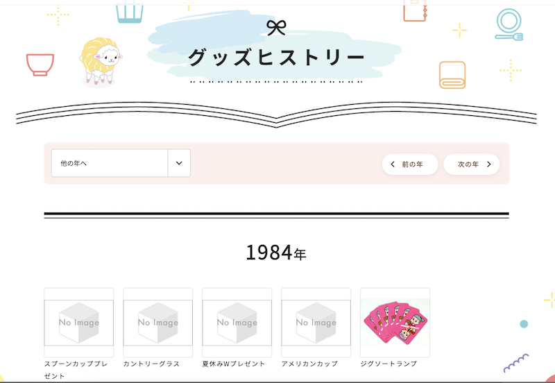 歴代グッズをアーカイブしている公式Webサイトの「グッズヒストリー」にも写真がないものがありますもんね