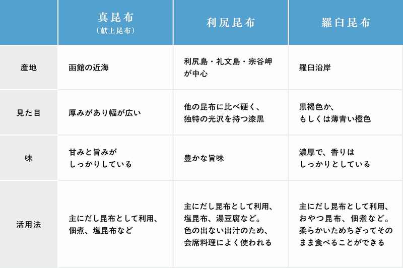 ──昆布の中にも、利尻昆布や羅臼昆布といったさまざまな昆布の種類がありますよね。それらに比べて、真昆布はどんな特徴があるのでしょうか?