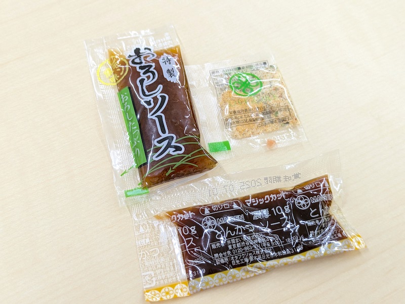 調味料も「とんかつソース、おろしソース、スパイスソルト」の3種類が付いてくる、ホスピタリティの高さもオススメのポイント。