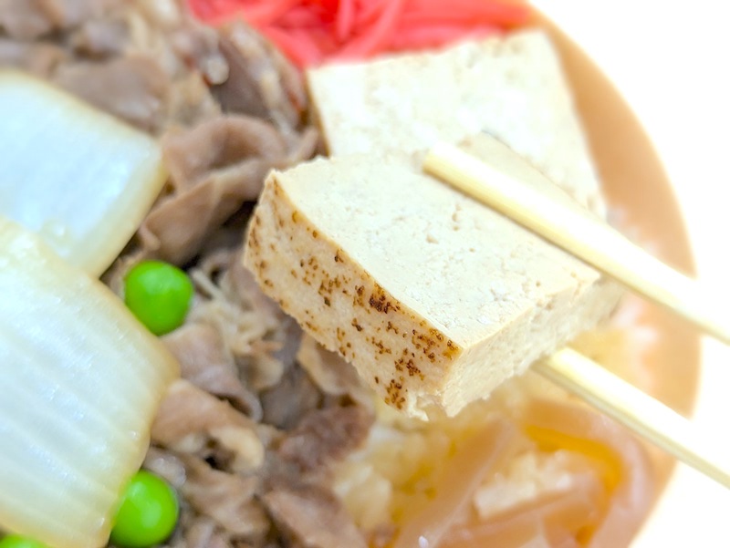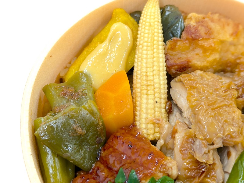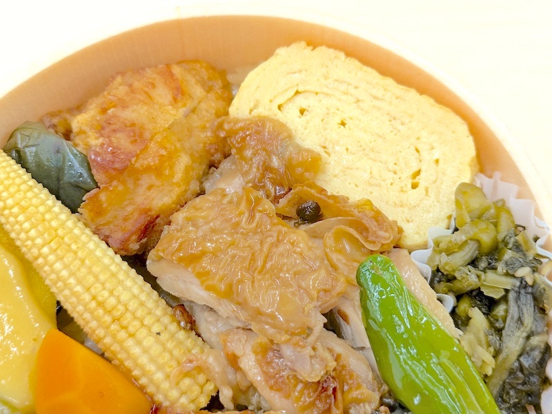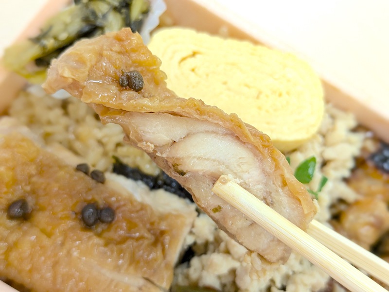 グリーンピースのふっくらとした甘みもアクセントや、焼き豆腐の染み方まで完璧。お弁当の量や味のクオリティも駅弁としてちょうどいい完成度なので、旅先でもご飯を食べる前提で購入できるのも嬉しいですね!