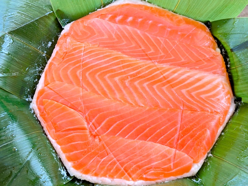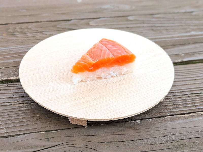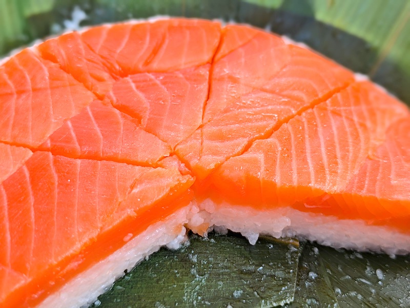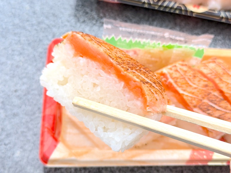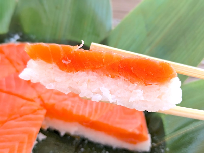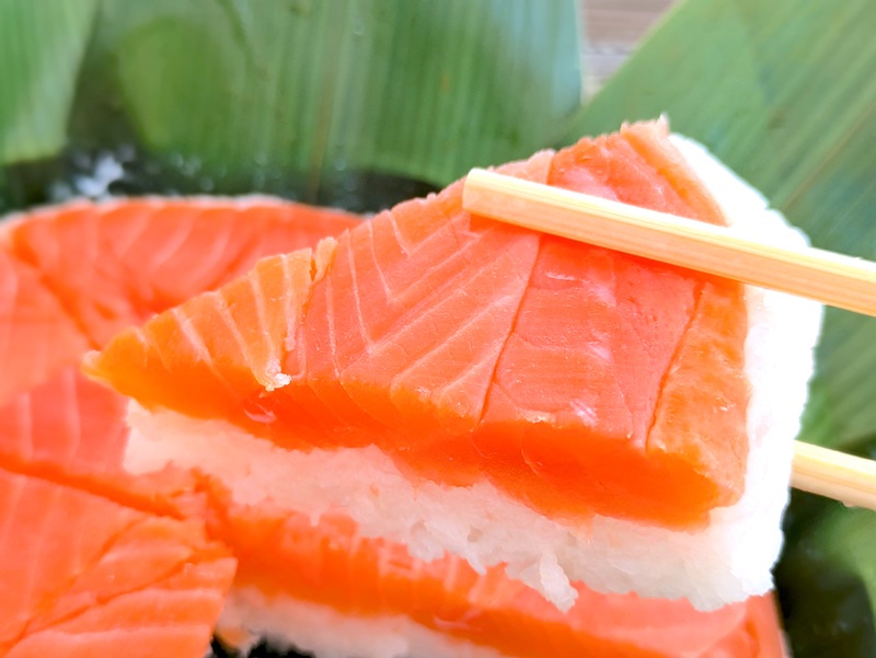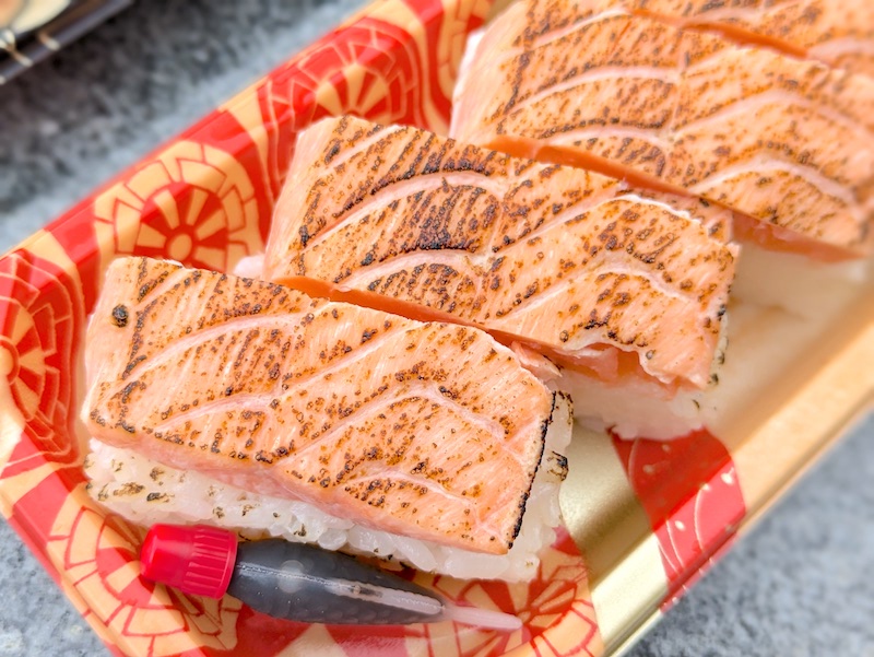ます寿司とは一味違ったサーモンの生に近い食感や柔らかさが特徴で、酢でしめているのにも関わらず肉厚で脂がのったサーモンの旨みが口の中で上品に広がるのもたまらなく美味しい。
