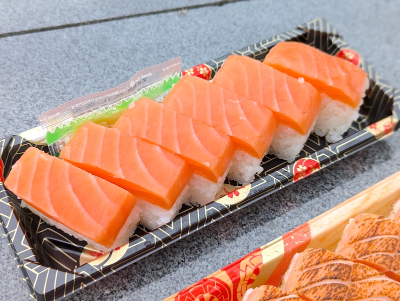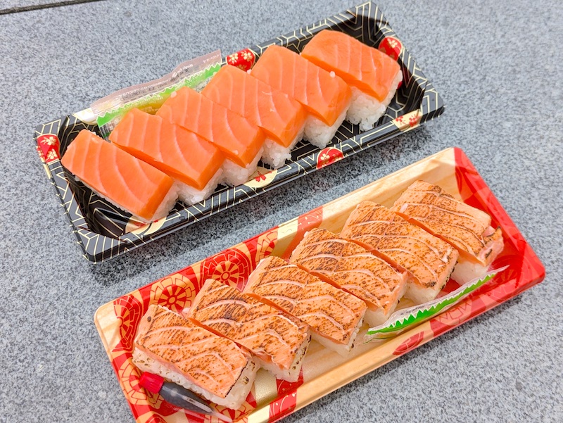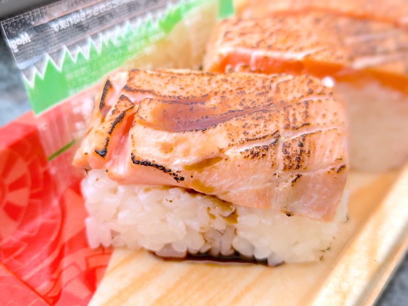 購入したのは「棒ます」と「炙り棒ます」の2種。どちらもサーモン好きにはたまらない、厚切りのキングサーモンを使っているのが特徴の商品。