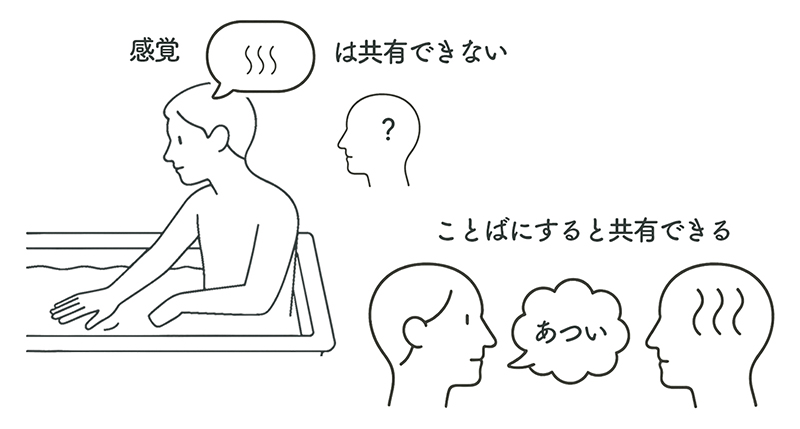 「例えば『あつい』ときに自分が感じた感覚は他人と共有できません。でも感覚を言葉にすると共有できる(客観的)よねってことを言ってます」