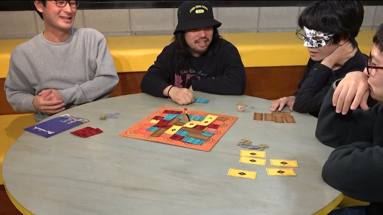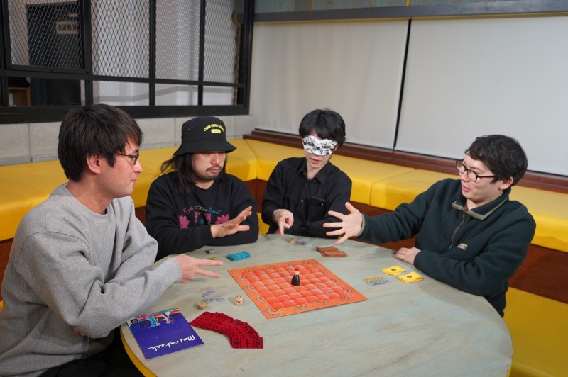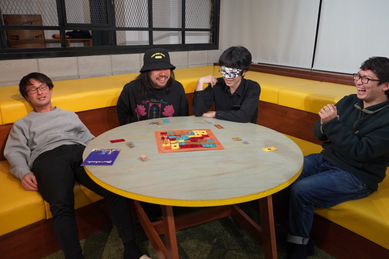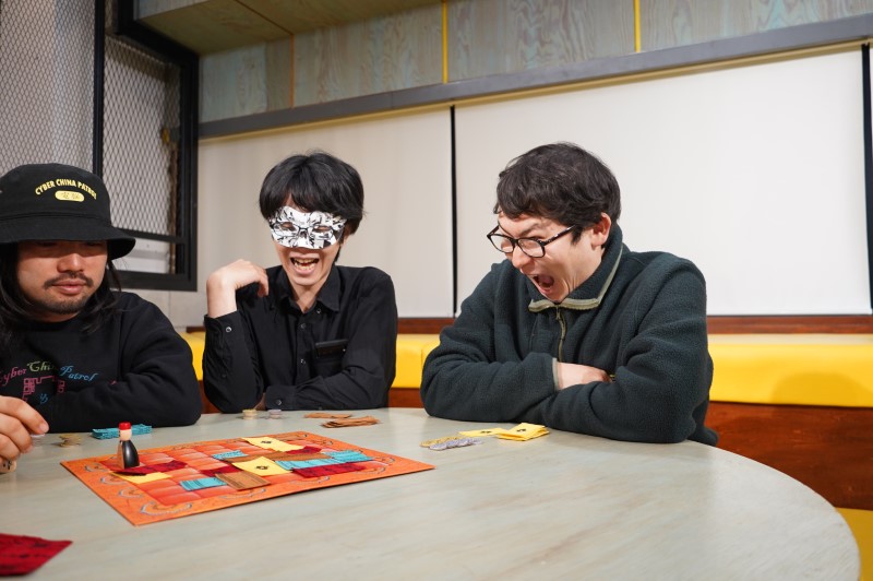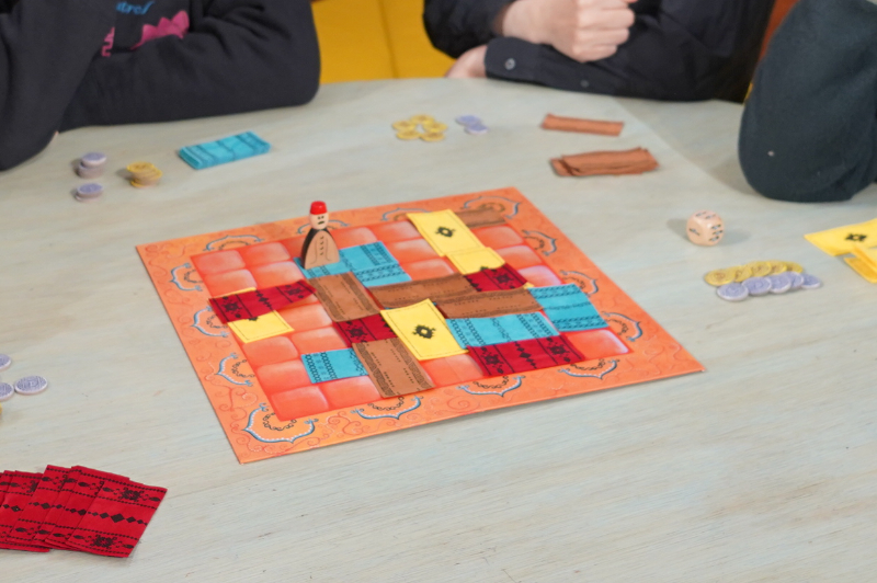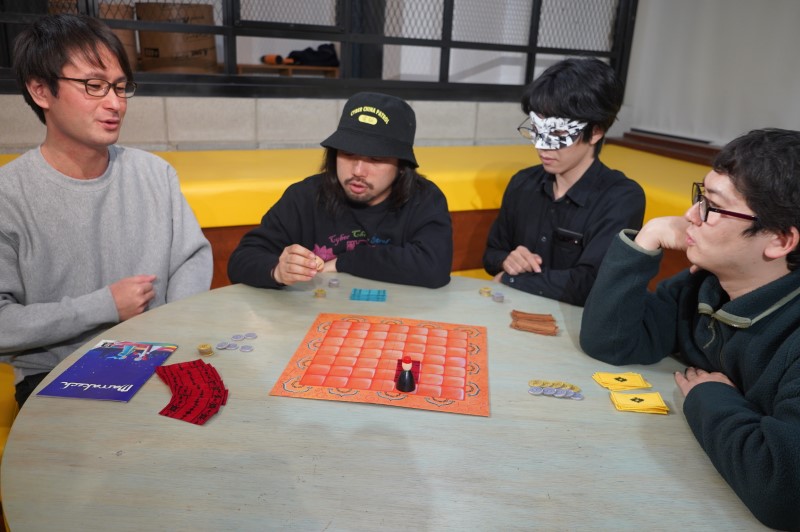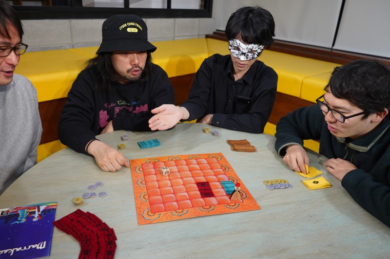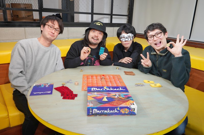 今回紹介してもらった中から、『マラケシュ』(じゅうたん売りになって自分の陣地を踏んだ人にお金を払わせるゲーム)をやるためにライター達を招集しました。