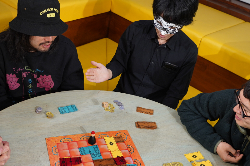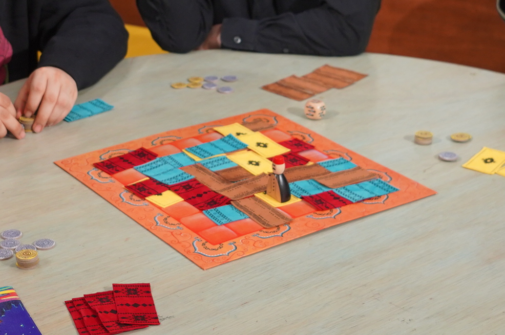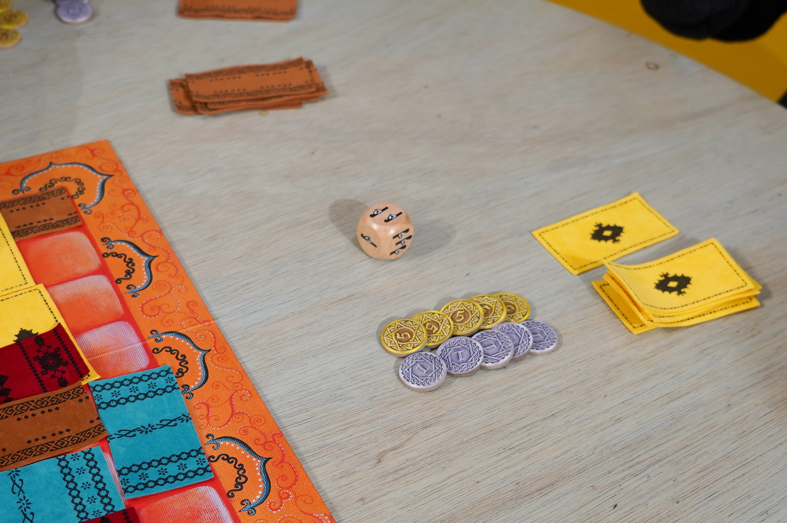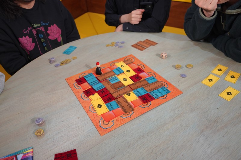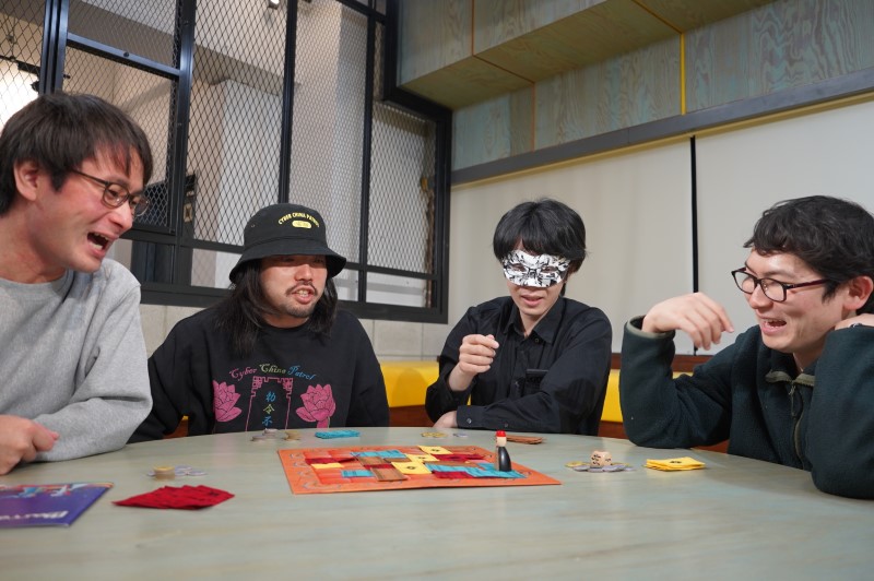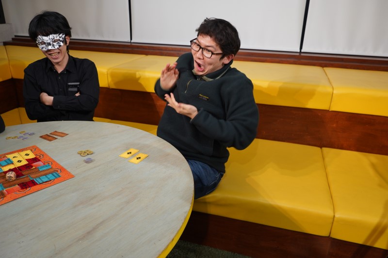 今回紹介してもらった中から、『マラケシュ』(じゅうたん売りになって自分の陣地を踏んだ人にお金を払わせるゲーム)をやるためにライター達を招集しました。
