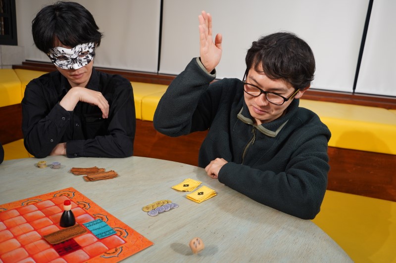 「次は僕の番ですね。目の前にオケモトが敷いたじゅんたんがあるから……サイコロで1か2が出たら踏んじゃう! そしたらお金を払わなきゃいけないんですよね?」