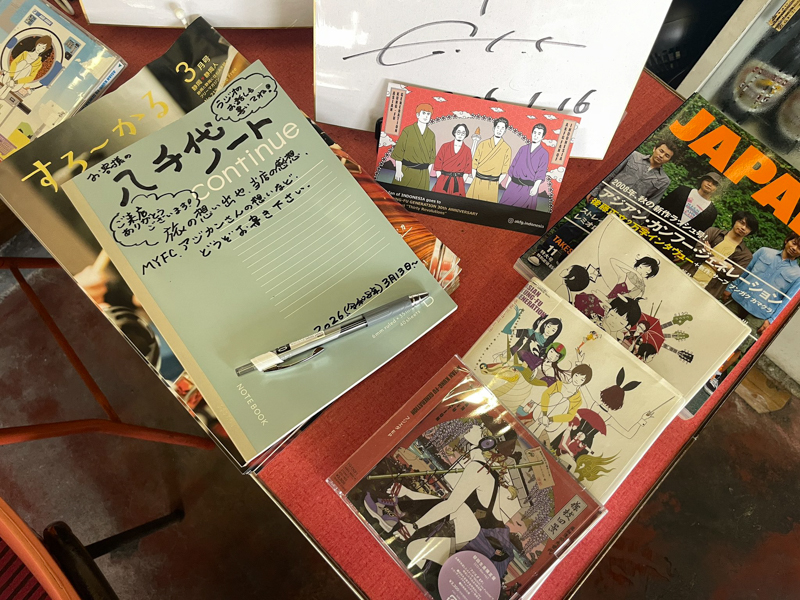 店内には、ASIAN KUNG-FU GENERATIONのCDやサイン、ファンが想いを綴れる「八千代ノート」が置かれている