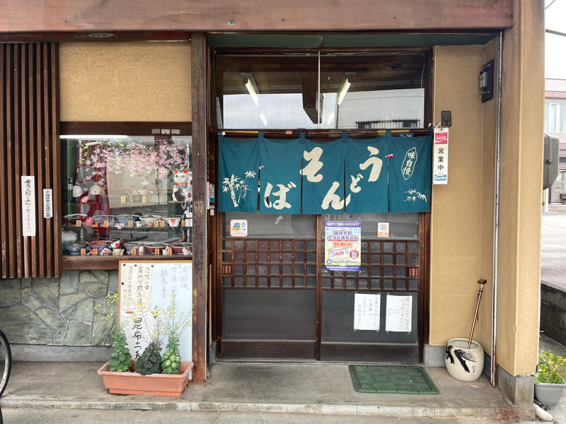 SO GOOD books & stylesから徒歩だと20分ほど。ASIAN KUNG-FU GENERATIONの楽曲「おかえりジョニー」のミュージックビデオのロケ地として、いまや全国からファンが訪れる聖地となったそば屋が昔ながらの佇まいの「八千代」。
