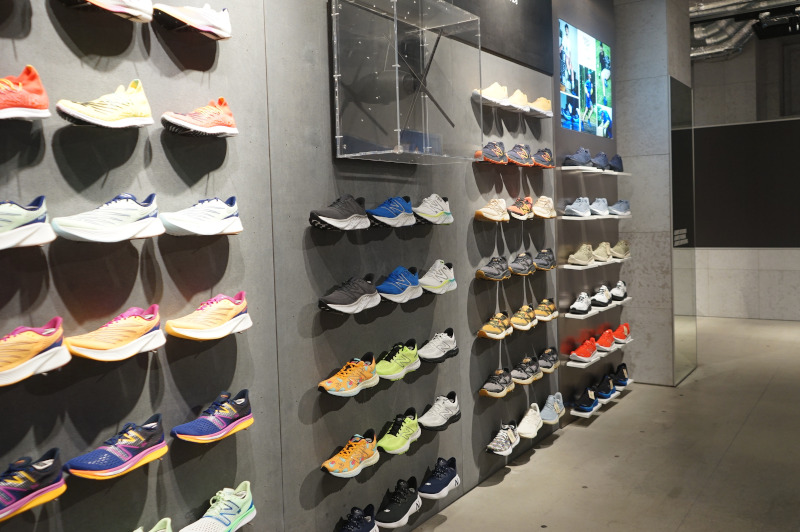 広々とした店内にはランニング用はもちろん、カジュアルなストリート用まで星の数ほどシューズが並んでいます。ウェアの品揃えもすごい!