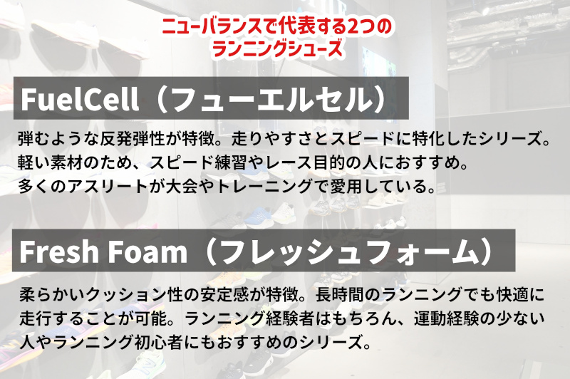 「『FuelCell(フューエルセル)』と『Fresh Foam(フレッシュフォーム)』の2種類です」