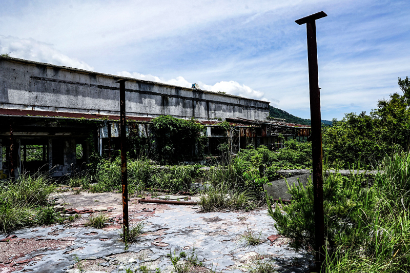 朽ちて色を失った建造物とは裏腹に、夏の日差しを受けた緑が生命力に溢れていますね