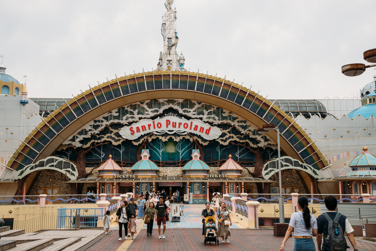 平日なのにとてもにぎわっているサンリオピューロタウン。多摩センターから徒歩数分のところにある