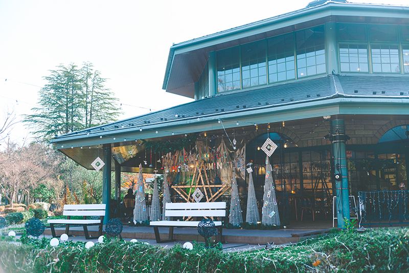 取材は12月中旬。八角堂にもクリスマスの飾りが