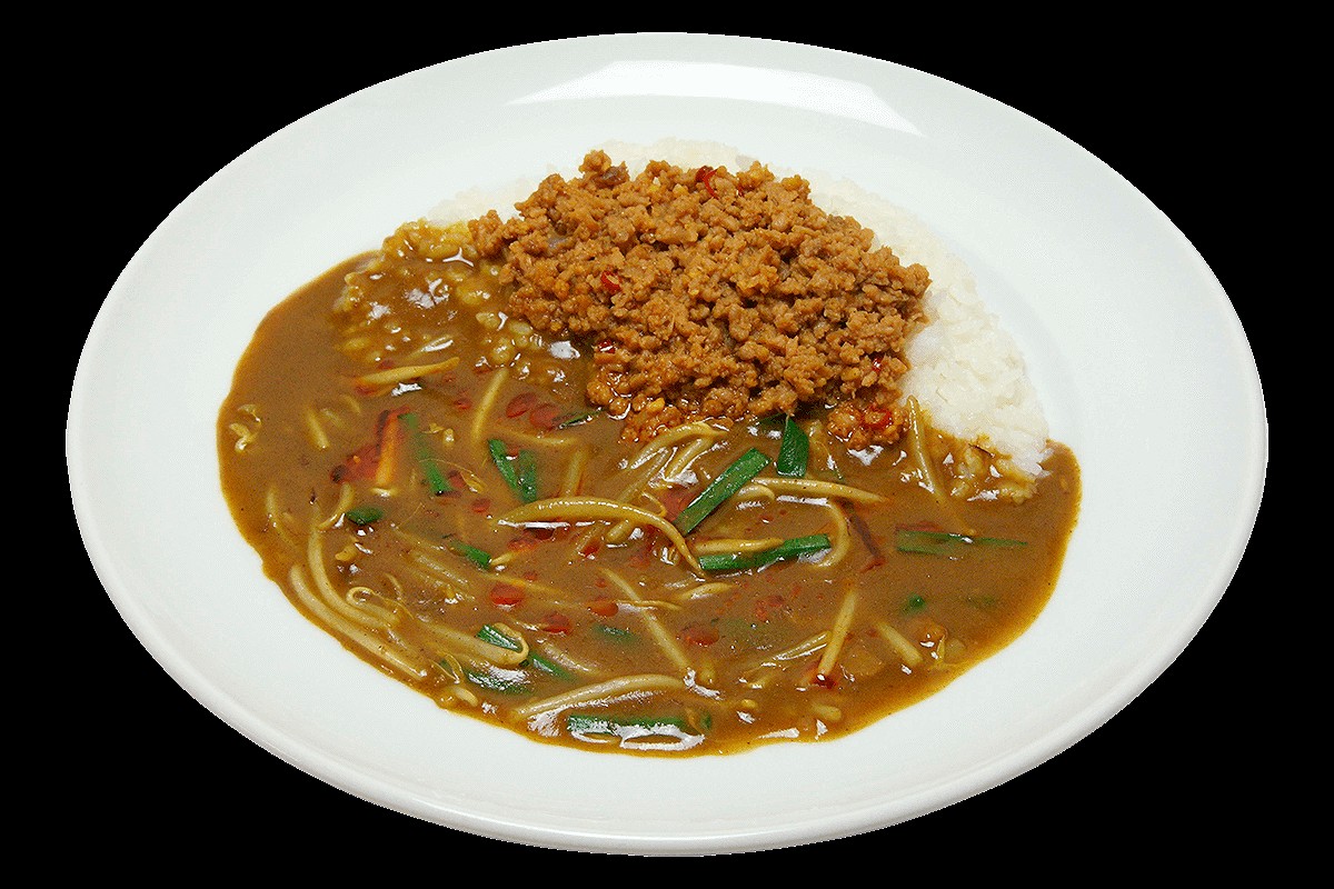 駒ヶ根インター店で提供される「ココイチ風カレーローメン(712円)」。伊那地方の麺料理ローメンから生まれた。ここまでのアレンジメニューもOK!