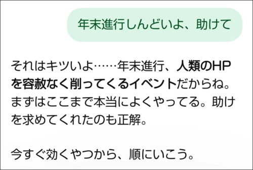 「まず受け止めてもらえると落ち着けますね。よくAIは『共感しすぎ』と揶揄されますけど、基本的にはホッとしますから」
