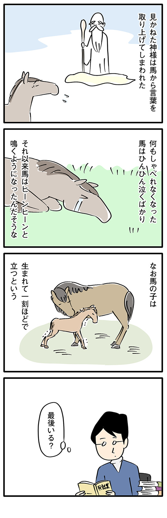 【8コマ漫画】木下晋也 『柳田さんと民話』 – 119話「泣いた馬」