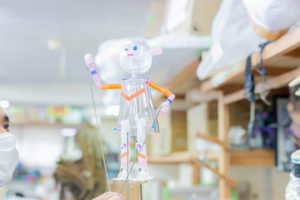 当日のワークショップで作れる棒遣い人形「コップロボ」