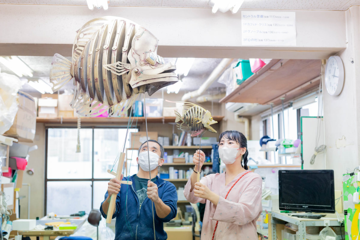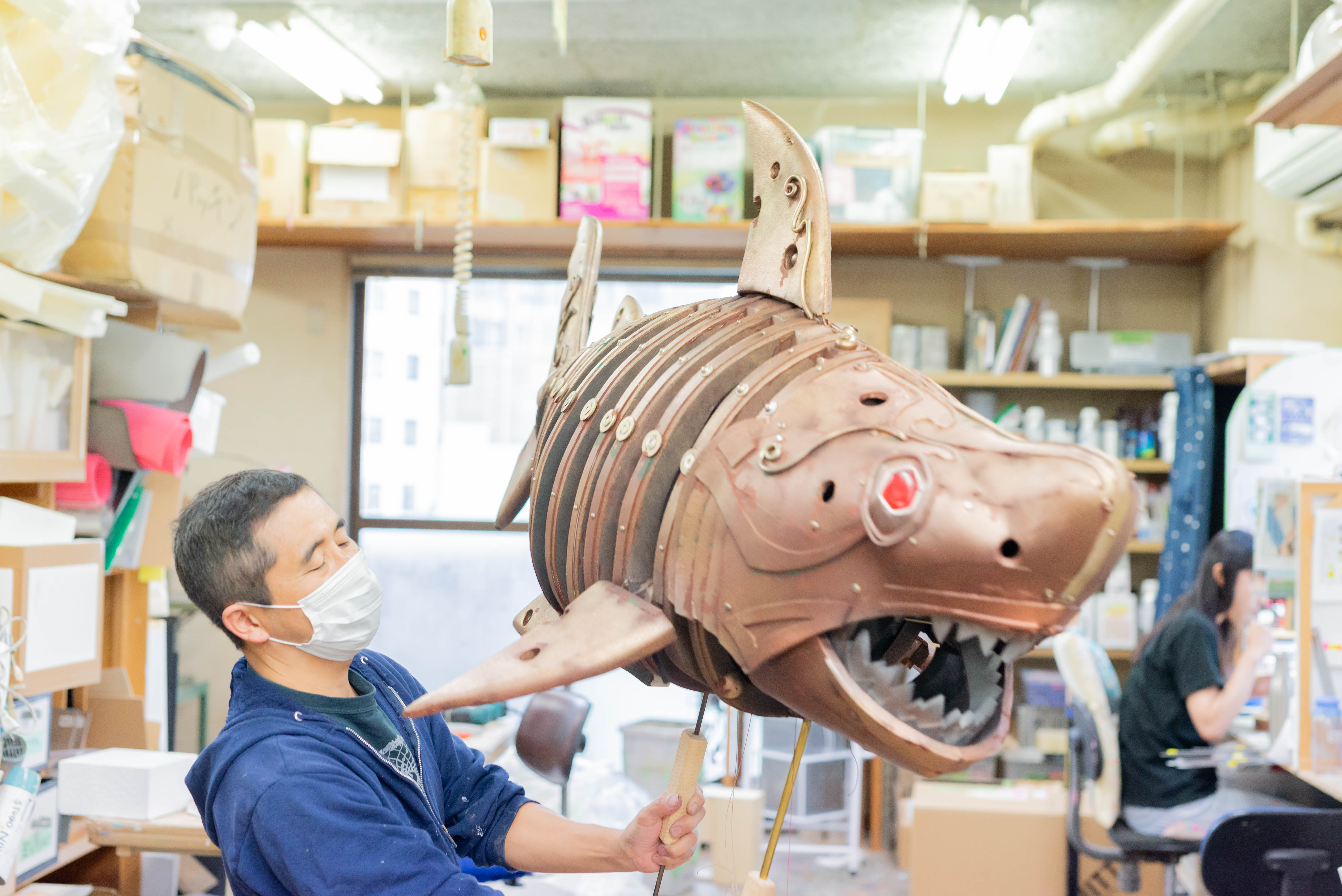 「変わっている人ですね(笑)。世代的には40歳前後と新卒の20代と二つの年齢層に分かれていて、社員20人のうち14人が女性ですね。美術部と制作部に分かれていて、制作部は問い合わせがあった時の窓口や人形劇の演出を担当しています。美術部は主に人形や造形物を作るチームになっています」