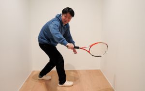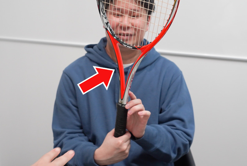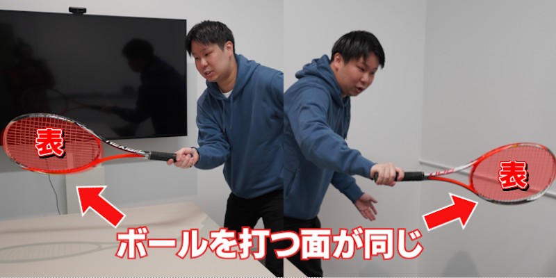 硬式テニスはフォアハンドとバックハンドを違う面で打つんです