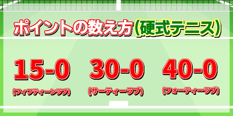 硬式テニスは15、30、40と数字の増え方が不規則ですけど……