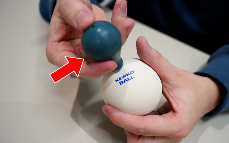 もう1つボールの違いでいうと、ソフトテニスは空気入れを使ってボールの空気を自由に入れられます