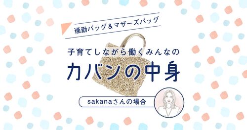 小さい子どもを育てながら働くワーママのリアルな「通勤バッグ」と「マザーズバッグ」の中身を紹介します。週5出社で4歳&2歳を育てるsakanaさんのカバンの中身には、荷物をできるだけコンパクトにする工夫が満載でした。