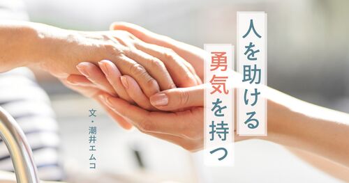 かつて困っていそうな人を見かけても「誰かが助けるだろう」と遠巻きに見ていたという潮井エムコさん。ふと勇気を出して声を掛けるようになり、今では「いい人ぶっていると思われてもいい」と考えているそうです。