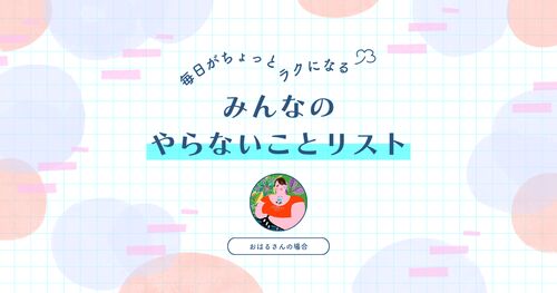 仕事や育児、家事で「やらなきゃ」に追われて、体や心が疲れていませんか?みんなが仕事・育児・家事で実践している「やらないこと」を教えてもらう本シリーズ。第1回はおはるさんの「やらないことリスト」を紹介します。