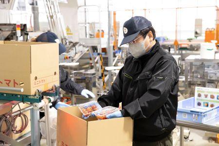 ミニトマトの選果、パック詰め、出荷