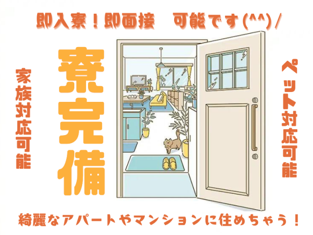 企業概要 | 当社は、北海道〜九州内で6,000件以上の求人を展開しており、特化している業種は、工場、倉庫のお仕事をご案内しております。 下記のように、多岐にわたりご案内可能★ ・未経験OK ・即就業 ・住み込みの求人 ・タトゥーなどお洒落OK ・即入寮OK ・資格を活かす業種 ★赴任・入寮、即日勤務OK→→寮も完備しています★ 遠方からの応募も大歓迎♪ 「引越し費用ない。。。」なんて方も安心! 専任のエージェントが対応致します!! また・・・・・・・・・ 寄り添う姿勢+引越しなども全面サポートしています★(規定あり) ご家族、友人、カップルでの入寮もご相談ください♪ \履歴書不要★/ 電話orリモート面接OK! 面倒な準備は一切なし♪ わざわざ足を運ばなくてもリモートで面談できます! 親子・カップル・友達同士での応募も大歓迎★ 一人では不安、、な方も安心♪ 『事業内容』 人材紹介サービス 有料職業紹介事業 / 27-ユ-304062 設立日 2023年4月 資本金 2,000万円 |
