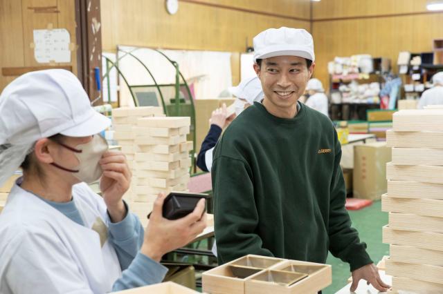 当社は、お弁当や仕出し、贈答品などに使われる「折箱」の企画・製造を手がける容器メーカーです。全国の包装資材商社を通じ、スーパーやデパ地下、駅弁など幅広い食の現場へ製品を供給しています。最大の強みは、多様な素材と形状を組み合わせ、名入れなどのオリジナル容器を「小ロットから企画・製作できる」柔軟な対応力。「楽しく働く」をモットーに社員同士の和を大切にする社風のもと、食を彩り美味しさを引き立てる裏方として、時代の変化の中でも着実に必要とされ続けています。
