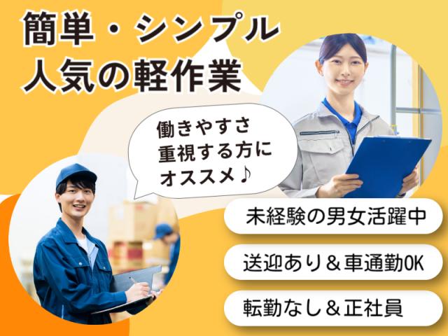 | 仕事内容 | 覚えやすい!空調完備で快適! 大手企業勤務の人気の軽作業♪ (お仕事番号:92-5 I) / 難しい作業ナシ♪ 初心者さんも安心のお仕事! \ ■簡単&覚えること少なめ ■未経験入社の男女活躍中♪ ■入社後1か月程度教育・フォロー有 ■上場大手&正社員で安定! ■休日たっぷり!定時日あり 【部品のピッキング作業】 指示書に基づいて、倉庫内から 必要な部品を探し、集める作業です。 ▼作業はシンプル♪ 1、指示書を確認 2、ランプの点灯した棚へ行く 3、棚の下にあるパネルを確認 4、回収・指示書を再確認し所定場所に置く 作業はこれだけ! デジタルピッキングシステムを導入しており 回収場所はランプ点灯で教えてくれるので 迷わず回収できます♪ ▼仕事のポイント! ・空調完備で1年中快適 ・入社後はマンツーマン教育あり♪ ・一人立ち後も質問しやすい環境 ・穏やかで落ち着いた職場 ・慣れてくれば1人でモクモク作業できます! / その他働きやすい環境をご準備♪ \ ・交通費全額支給!マイカー通勤OK ・電車通勤の方は送迎バス利用OK ・年間休日125日以上で定時多め♪ ・上場大手企業勤務&正社員で安定 |