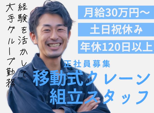 | 資格・経験 | ■学歴不問 【応募条件】 ・玉掛、床上操作式クレーンの資格 ・機械設備の組立経験 ◎経験年数や作業種類は問いません! ◎第二新卒・ブランクをお持ちの方、歓迎! 電動ドライバーやレンチ、スパナ、 ハンダ付けなど、なにかしらの 組立経験がある方を歓迎いたします! 最先端の技術と作業環境が整っている 大手グループ企業内で「少しの経験」も 強みにご活躍いただけます! |