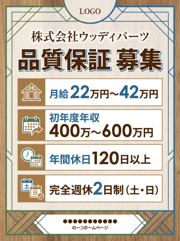 | 仕事内容 | 品質保証部門のマネジメント候補として、お客様満足度向上に向けた品質改善活動をリードしていただきます。 品質保証体制の構築:プレカット製品の各工程における品質管理システムの確立 ISO9001の管理運用:認証維持と継続的な水準向上 コスト最適化:品質関連費用の削減と効率化の推進 顧客対応の統括:クレーム対応から原因分析、改善実施、再発防止まで一貫管理 社内ルール整備:品質管理に関する規程・手順書の作成と展開 改善活動の推進:不良ゼロを目指した予防的な品質向上施策の展開 |