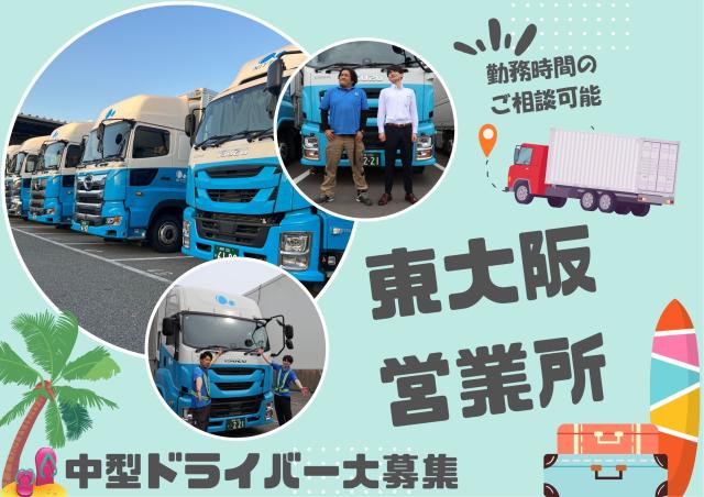 [東大阪市]土日休みの中型配送ドライバー/昼からのゆっくりスタート!/高月給33万〜/中距離配送♪