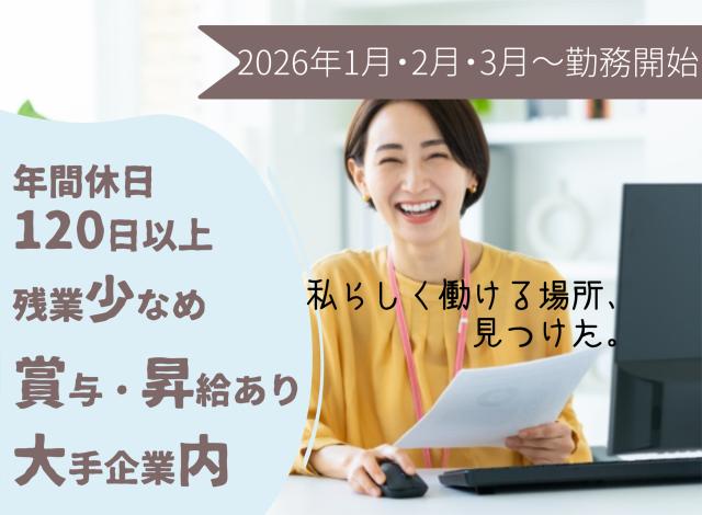 1月・2月入社◆大手で4名募集【男女活躍の事務スタッフ/未経験・ブランク歓迎】土日祝休みで17時定時
